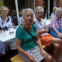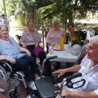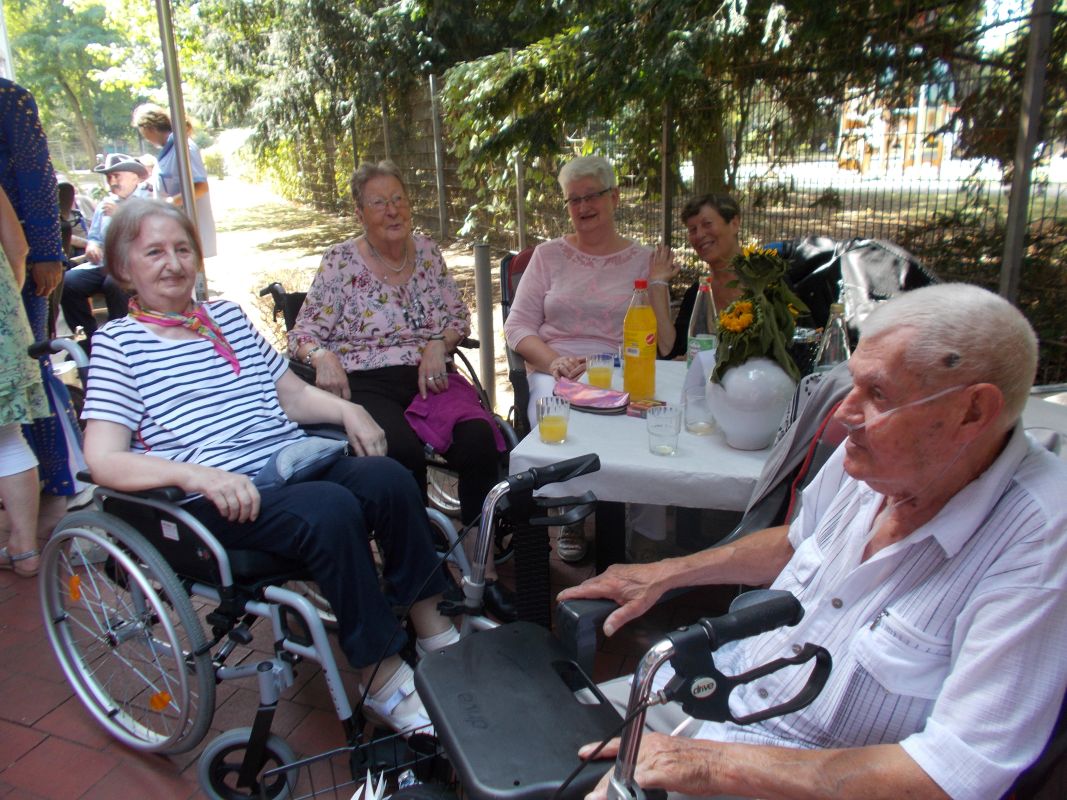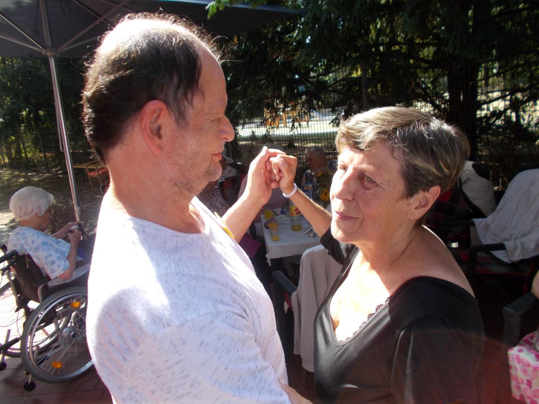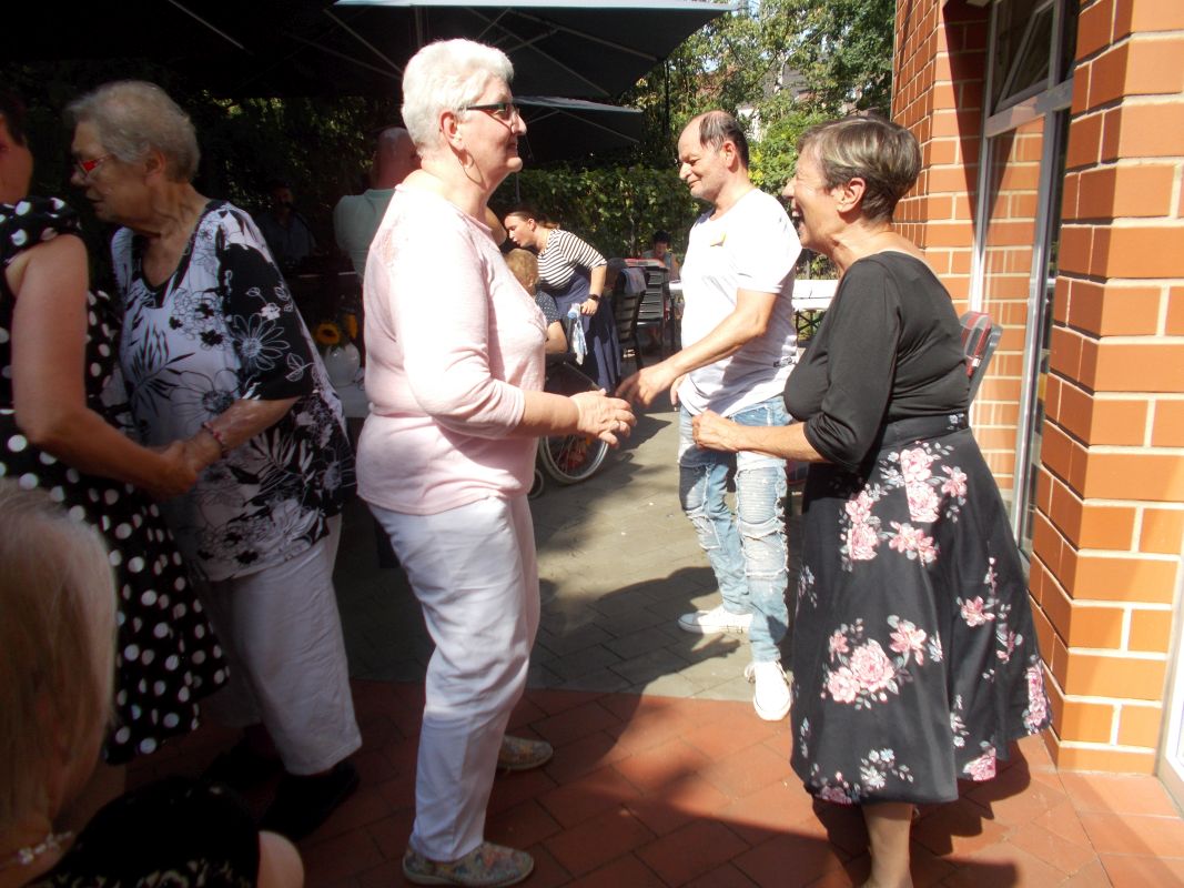 Bei prächtigem Wetter haben wir am 25.07.2019 im HEWAG-Seniorenstift unser Sommerfest gefeiert. Petrus hat es wirklich sehr gut gemeint, strahlend blauer Himmel und die hohen Sträucher und Bäume, die Schatten gespendet haben, war der Garant für ein perfektes Fest. Das Fest stand unter dem Motto: Die 60er und 70 er Jahre“. Dave Haiden unser Alleinunterhalter hat durch seine schöne Auswahl an Liedern, allen eine große Freude bereitet. Dazu der Elvis Imitator Nevrez, der sich an diesem Nachmittag in Höchstform präsentierte. Einige Bewohnerinnen nutzten die Möglichkeit, sich mit dem über die Stadtmauer bekannten Künstler fotografieren zu lassen. Zum Sommer passen immer leckere Würstchen und diverse frische Salate, zusammen mit der Tombola Aktion, war das ein runder und schöner Nachmittag.