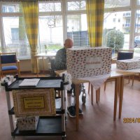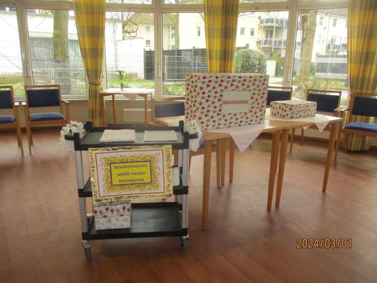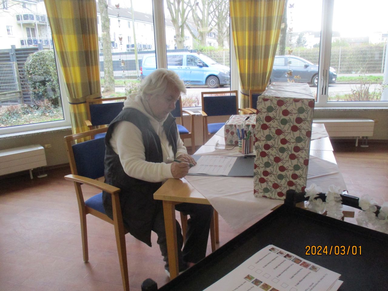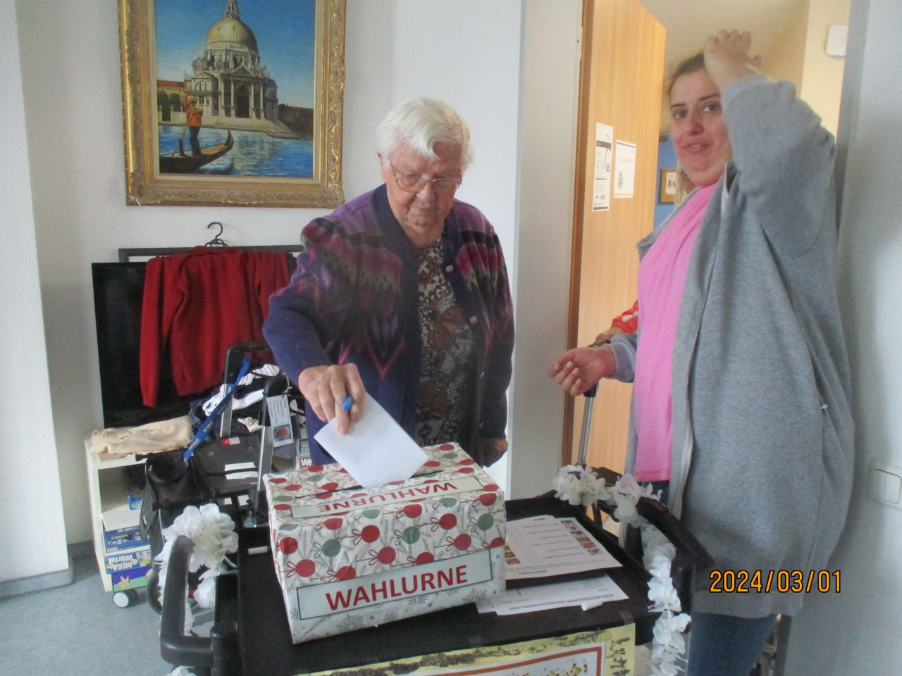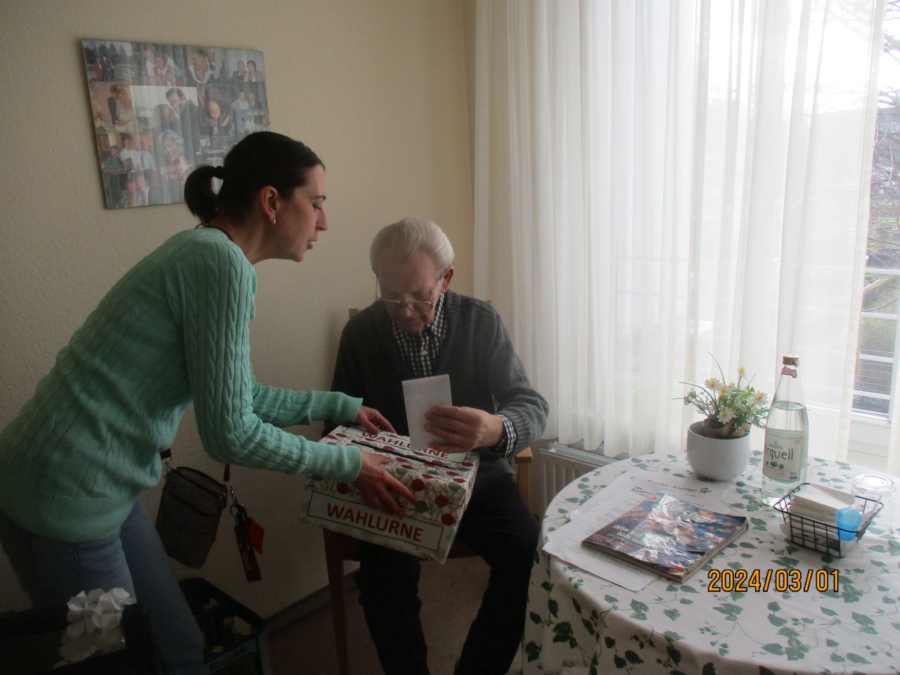 Unsere Bewohner kamen zahlreich in die Cafeteria, der von 10-13 Uhr zum Wahlbüro umfunktioniert wurde. Die Wahl des Heimbeirates stand an und viele interessierten sich dafür. Die Betreuungskräfte übernahmen den Transfer der Bewohner*innen und gingen mit den Stimmzetteln zu den Bewohnern, die aus gesundheitlichen Gründen nicht ins Wahlbüro kommen konnten. Somit konnte jeder der wollte, seine bis zu fünf Stimmen abgeben.